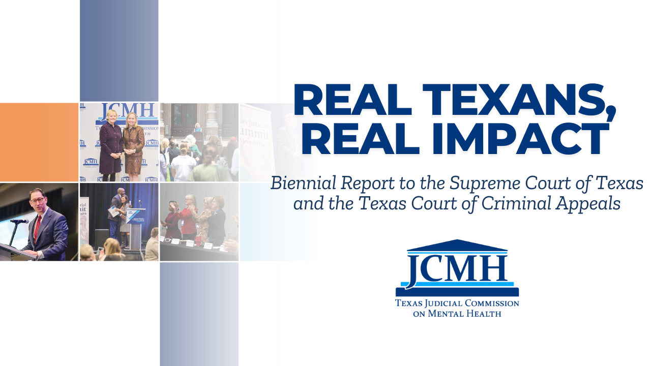 The mission of the Judicial Commission on Mental Health is to engage and empower court systems through collaboration, education, and leadership, thereby improving the lives of individuals with mental health needs, substance use disorders, or intellectual and developmental disabilities (IDD).