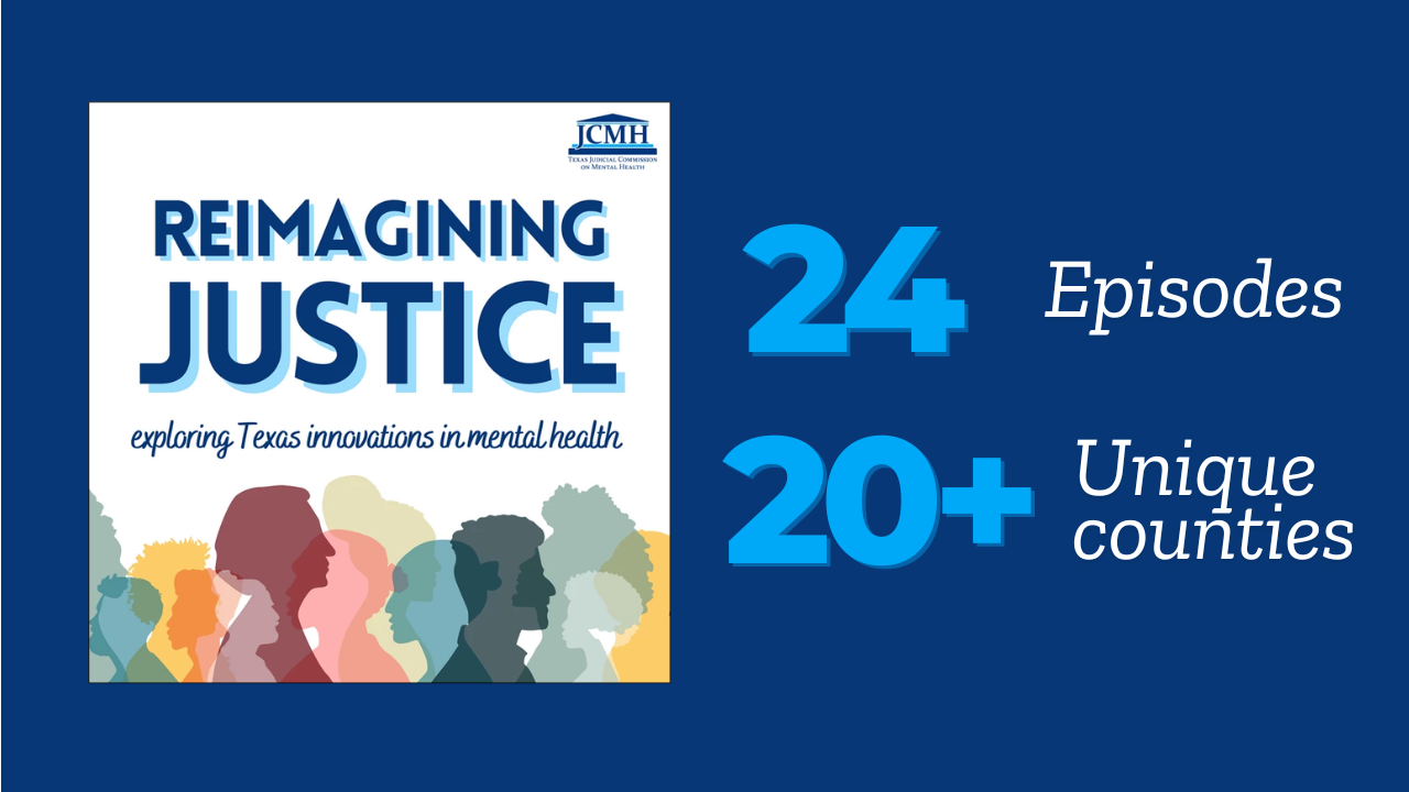 The Texas Judicial Commission on Mental Health brings you an inside look at the individuals working to improve the lives of those at the intersection of mental health and justice in our state. Join us as we sit down with Texas mental health stakeholders and delve into their personal stories, experiences, and insights in the field. Listen in as we highlight their work and initiatives aimed at advancing mental health support and addressing the challenges in the criminal justice system. Get to know the leaders driving change and creating a more equitable and compassionate system for all. The podcast is published every first Friday of the month.